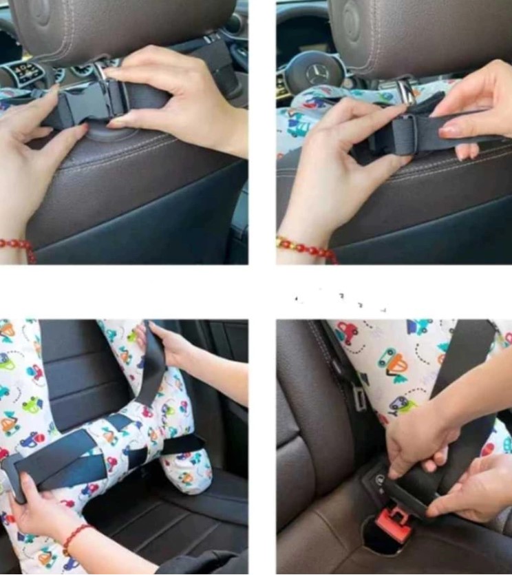Almofada travesseiro para carro; utilizada em viagens de curta e longa distância. Vem com cinto de segurança.