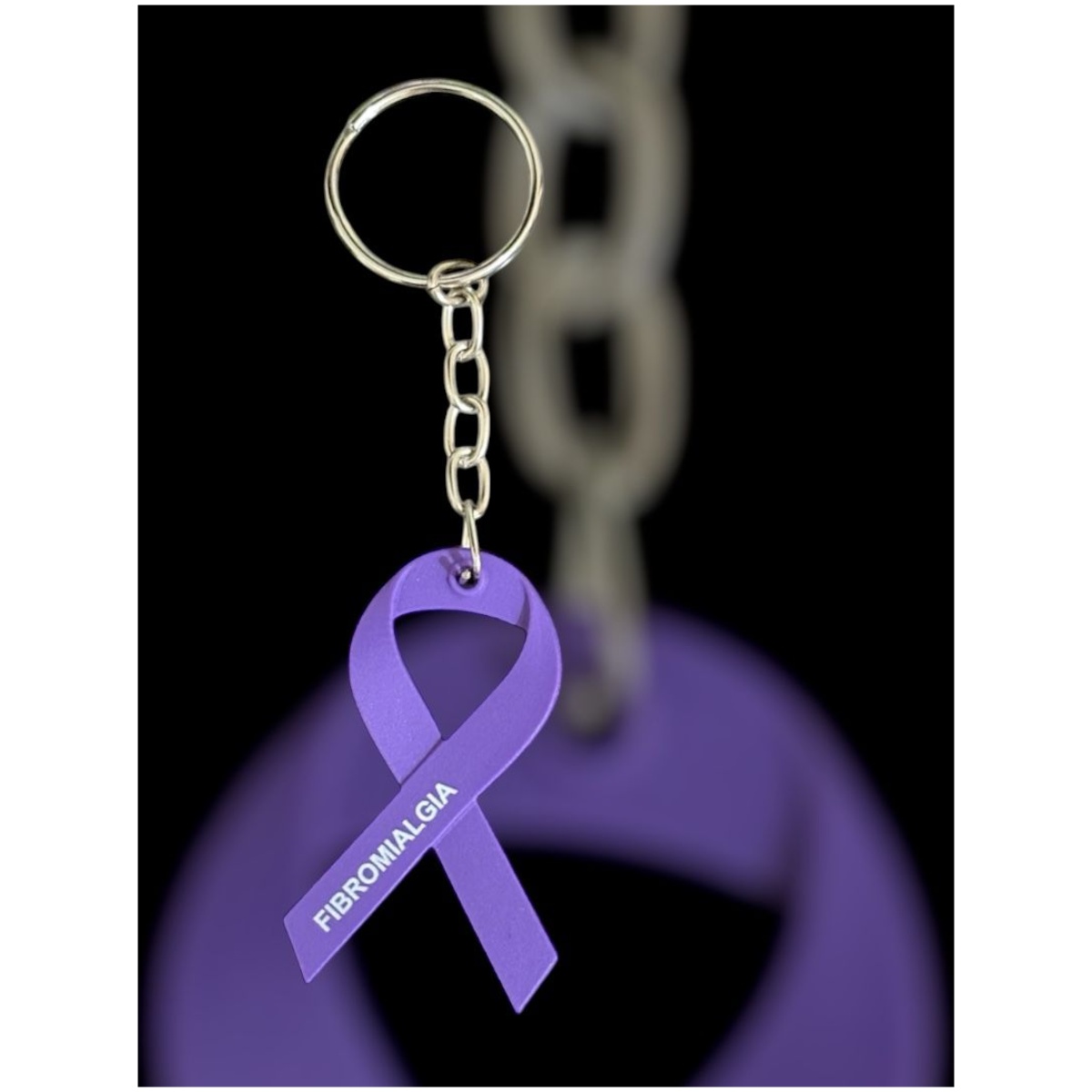 Com um design vibrante que destaca o símbolo da Fibromialgia, este chaveiro é leve, durável e feito de material emborrachado de alta qualidade.
