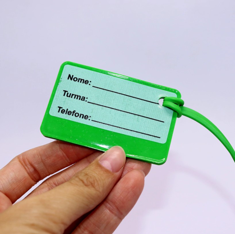 Tag de mochila, é um produto atóxico, livre de metais pesados e ftalatos. Preencha os dados no verso com caneta esferográfica ou caneta permanente ponta fina. Cuidado para não errar, pois fica permanente.